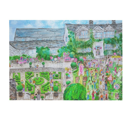 Chloe Marsh's "A Wedding in the Garden" perfectly encapsulates the joy and vibrancy that Holdsworth House is known for, particularly through its bustling wedding scene. As the winner of the under-18s category, Chloe, at just nine years old, has illustrated the hotel's gardens filled with festivities and cheerful gatherings that mirror the 120 weddings the venue hosts annually.