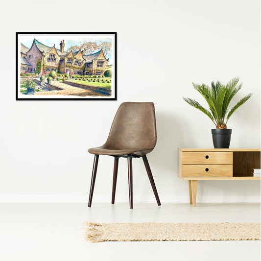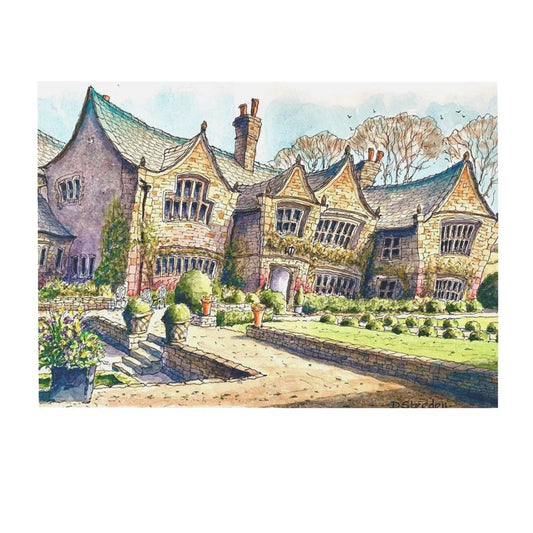 Steeden's 'en plein air' method, preferring the spontaneity of on-site painting, allows him to chronicle the 'here and now' with an immediacy that studio work cannot replicate. The result is a lively yet intimate snapshot of Holdsworth House, inviting viewers to step into the warmth of this timeless venue. His technique offers a fresh perspective that harmonises the grandeur of the past with the vibrancy of the present, encapsulating the house not just as a structure but as a living, breathing entity.