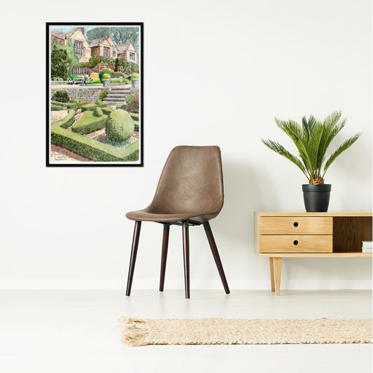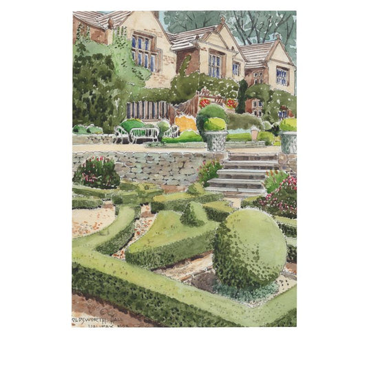 McAllister's choice of viewpoint marries the stately grandeur of Holdsworth House with the natural elegance of its gardens, encapsulating the harmonious balance between man-made and natural beauty. This artwork is a heartfelt rendition of a heritage site that continues to stand timelessly amidst its carefully curated grounds.